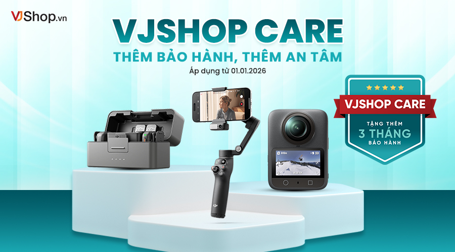 Từ ngày 01/01/2026, khi mua DJI Mic 3, DJI Osmo 360 hoặc Osmo Mobile 8 tại VJShop.vn, khách hàng sẽ được tặng ngay gói bảo hành VJSHOP CARE, với thời gian bảo hành tăng thêm 3 tháng so với chính sách tiêu chuẩn của hãng.